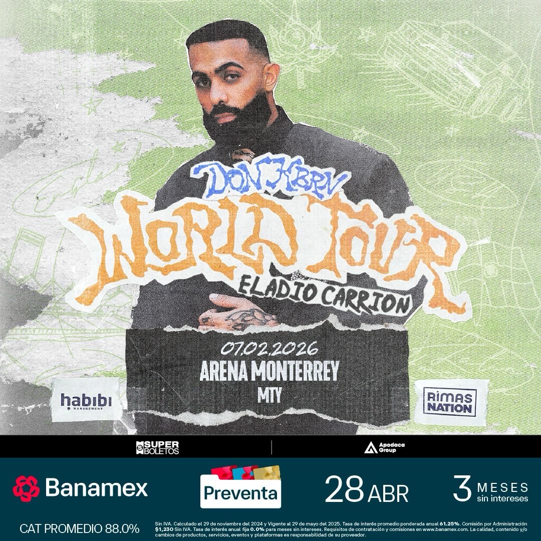 Una de las estrellas del mundo rapero en la actualidad debutará en la ciudad; El gran Eladio Carrión, el intérprete de temas como “Romeo y Julieta”, “Vetements”, “El Reggaeton del disco”, “H.I.M.”, “Sigue bailándome” entre otros éxitos llegará el próximo 7 de febrero a la Arena Monterrey.