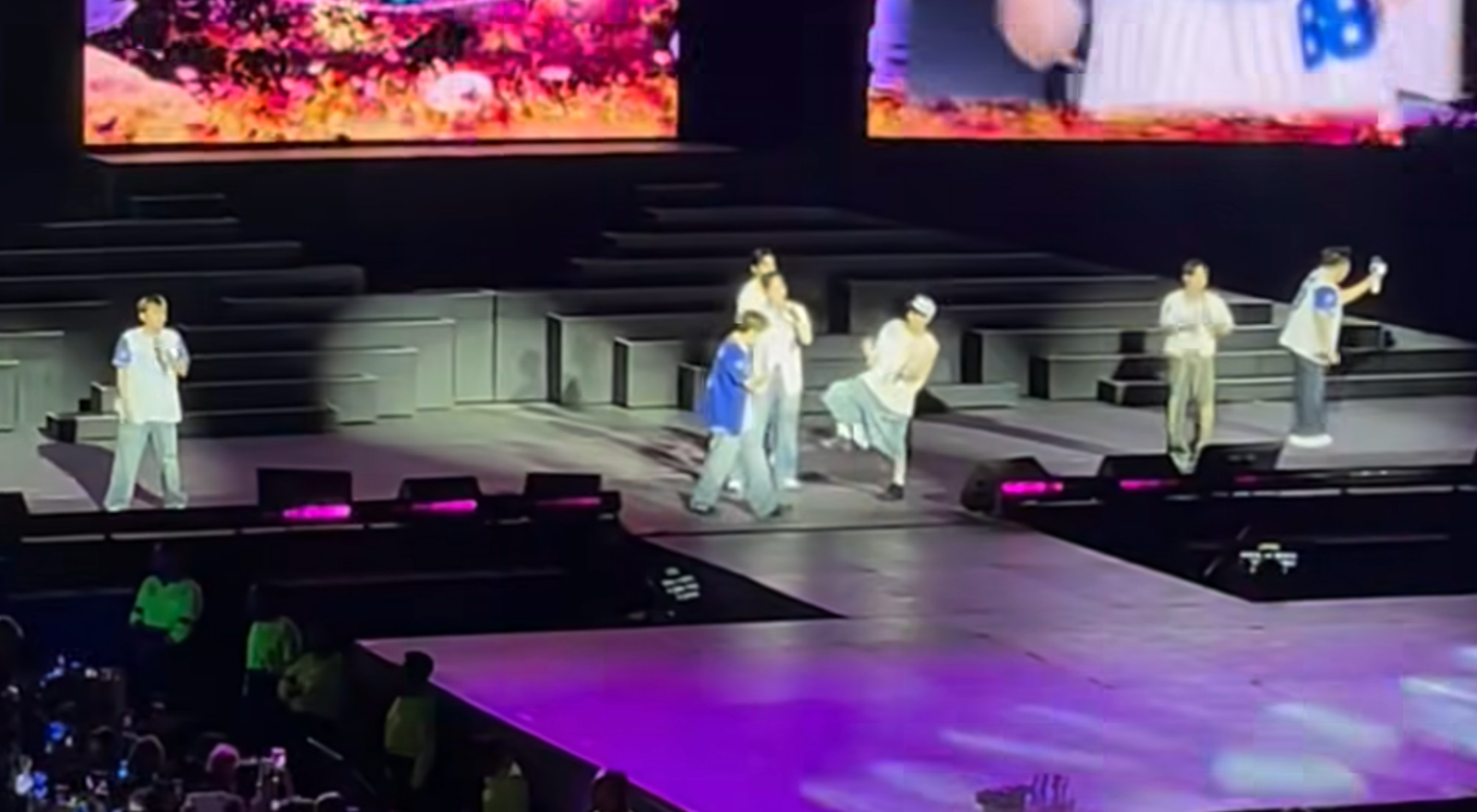 Los fans levantaron carteles formando la frase “I Do”, creando una postal perfecta entre lágrimas, luces y promesas.